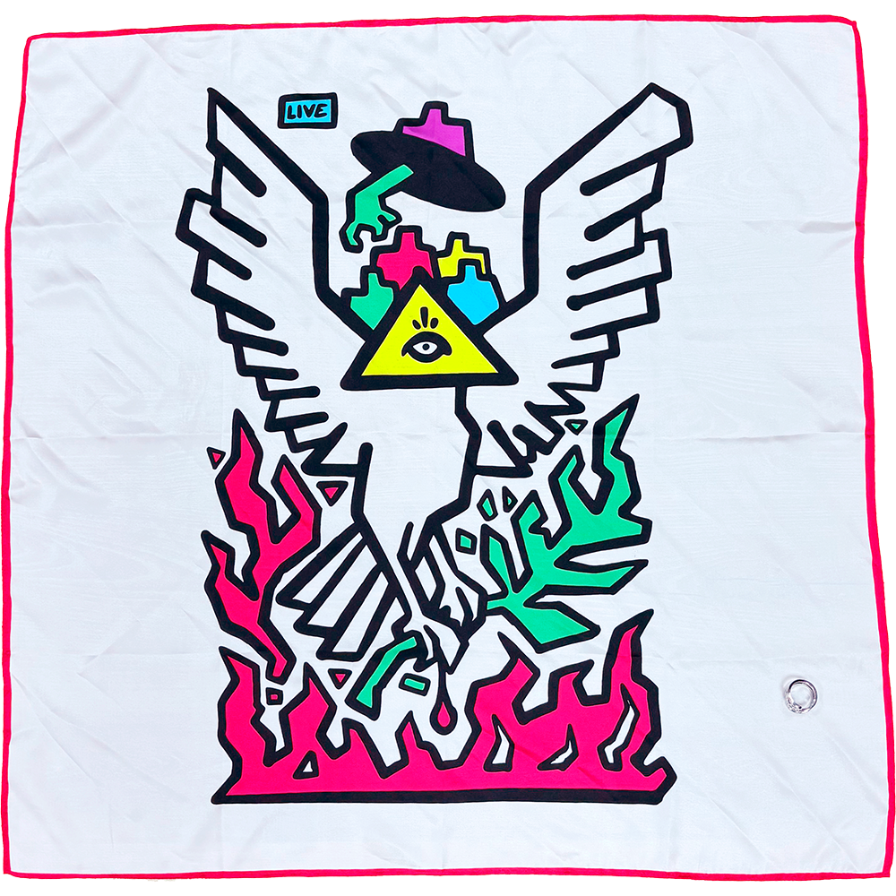 Pañuelo exclusivo estampado con la portada del álbum "Hecho en Tiempos de Paz". Ideal para darle un toque muy “sueco” a tu look.